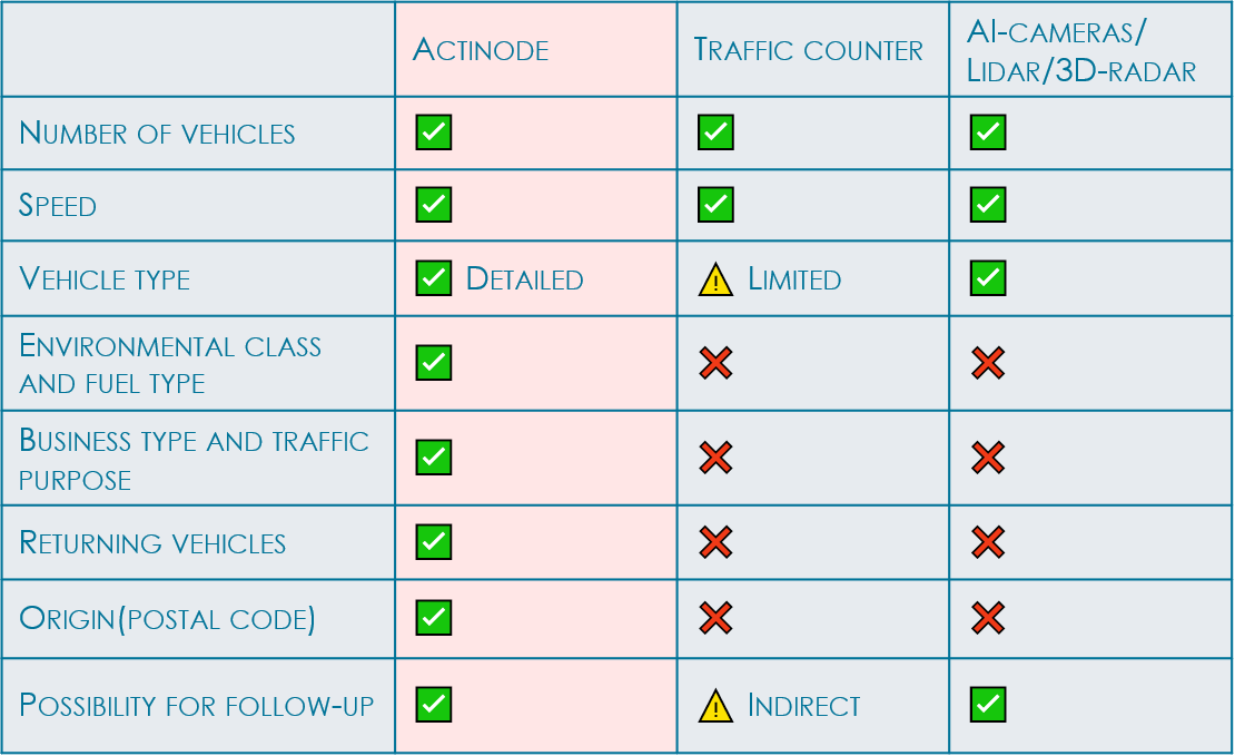 Yes. In Kista, Stockholm, Actinode was compared with traditional pneumatic tubes. The results were clear: higher accuracy, richer data, and more actionable insights—regardless of weather or time of day.